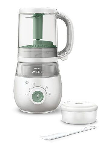 От много фино пасирани плодове и зеленчуци до комбиниране на съставки и най-накрая – предлагащ текстури на парченца. Нашият уред за приготвяне на здравословна бебешка храна „4 в 1“ ви подкрепя във всяка кра